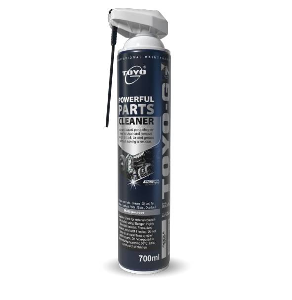 TOYO-G Powerful Parts Cleaner, ideal for use to dissolve and remove oil, grease, tar, brake fluid, and dirt without leaving residue. Safe for use on most unpainted metals and will not affect oxygen (O2) sensors or catalytic converters upon incidental contact. Caution: Check for material compatibility before using.