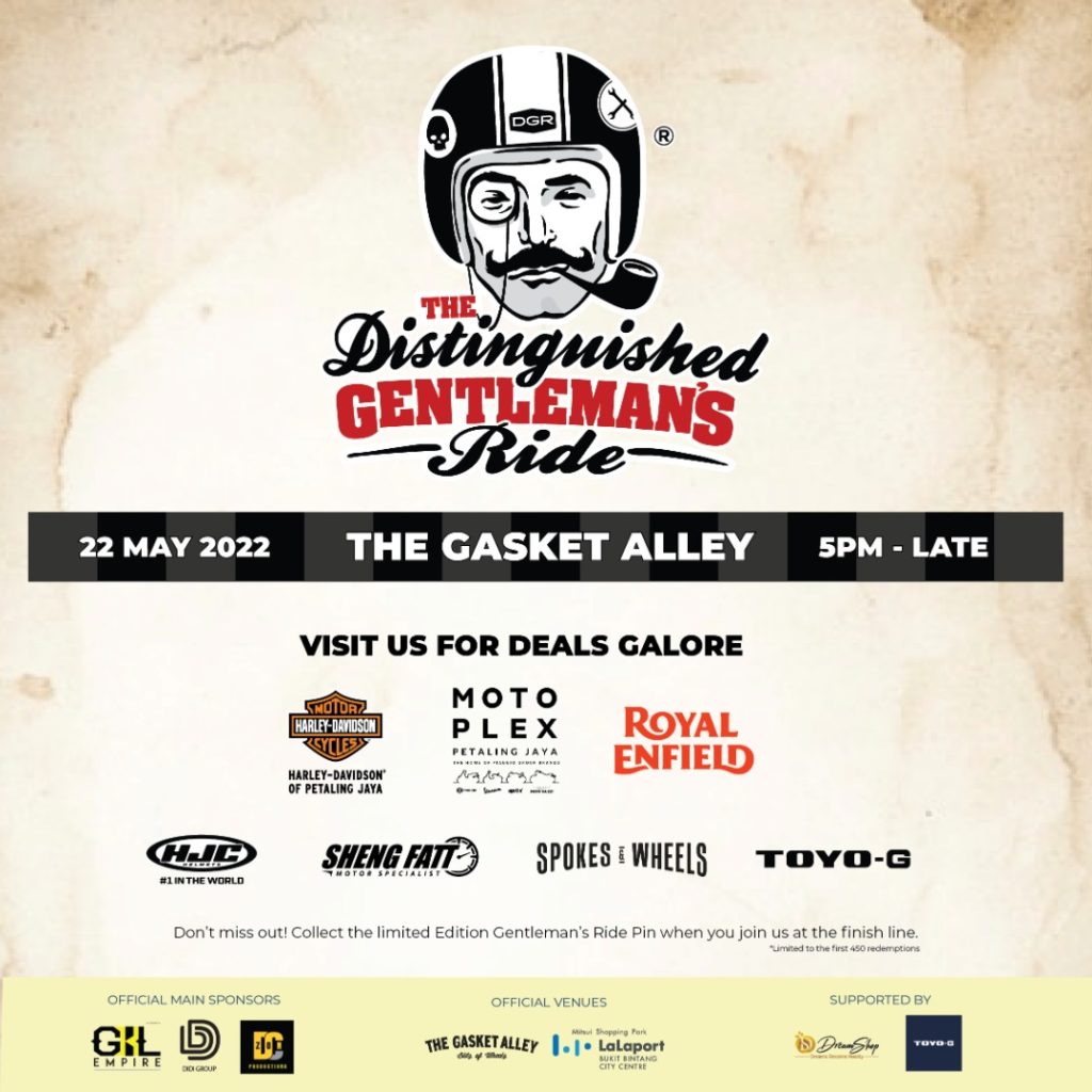 This year, we riding in the city with a squad of gentlemans and ending at #thegasketalley. Join us for exciting deals on the 22nd May 2022 when u visit our showroom. Don’t miss out on the limited edition Gentlemen’s Ride Pin when you join us at the finish line (The Gasket Alley). *T&C Apply